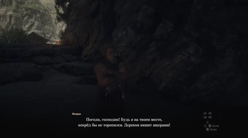 Оказавшись в поселении, двигайтесь в его южную часть, пройдя через каменную арку в грот. Здесь вы обнаружите стражника Дилана, который попросит вас спасти его товарищей, угодивших в гнездо чешуйчатых. Спуск в подземелье находится прямо рядом с солдатом.