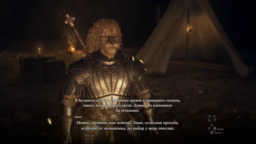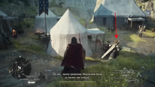 Есть вероятность, что, если вы подойдете к лагерю днем, вы не обнаружите воина там. В таком случае его можно будет найти на тренировочной площадке в районе Пограничной заставы. После разговора с вами он вернется к своей палатке.