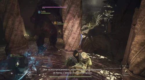 Однако если вы не хотите, чтобы Дориан пострадала, то вам нужно хотя бы отнести ее подальше от места сражения – для этого поднимите ее (кнопка RT), вынесите из каменной беседки и положите на землю. Если у вас есть в группе женщины то вы можете просто дождаться, пока огр не схватит одну из них и сам не убежит с первого места боя.