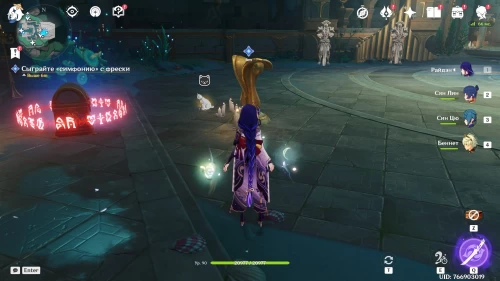 Изучите инструкцию про Автогармонические свирели, а затем примитесь за решение головоломки. Здесь все довольно просто. Сначала подойдите к правому механизму и посмотрите на стену перед ним, чтобы увидеть ноту, которую вам нужно сыграть. Затем нажмите на клавишу «Т» для активации режима игры и удерживайте клавишу «Е», пока не выберите на устройстве нужный символ.