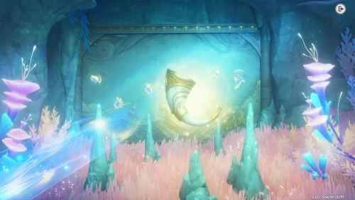 Далее вам нужно будет собрать все фантомы птиц возле рога. Для этого подплывите к трем призракам, беспорядочно плавающим неподалеку, чтобы сопроводить их к рогу. Как только они застынут на одном месте, как показано на второй картинке ниже, – ваша задача будет выполнена.