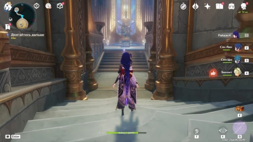Вернитесь на Капитолийский холм и взаимодействуйте со штурвалом, чтобы выпустить ихор по золотому пути. Далее начните плыть вслед за китом, проплывая через ноты и вовремя нажимая на клавишу «Пробел», под красивую мелодию. В конце вы сможете войти в золотой дворец.