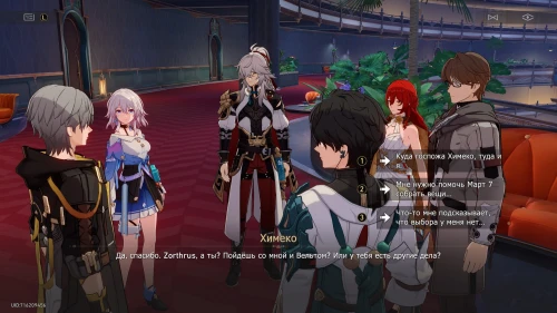 Вы можете сразу же подойти к Черному Лебедю и пообщаться с ней или перед этим поговорить с остальными членами Звездного Экспресса (необязательно). Второй вариант лишь позволит вам прослушать чуть больше диалогов, которые ни на что не влияют.