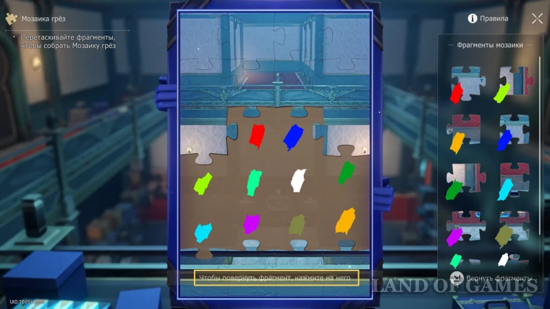 Остается собрать Мозаику грез: воспользуйтесь нашей подсказкой, на которой отметили одинаковыми цветами детальки и их верное расположение (если не подходит, повращайте элемент).
