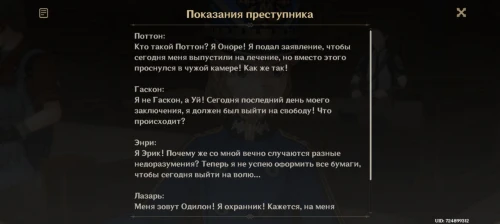 Из своей комнаты в крепости отправляйтесь в лазарет. Ризли расскажет, что в расследуемом им деле возникла путаница: заключенные утверждают, что их по ошибке приняли за других людей. Офицер Моргана предоставит вам показания преступников.
