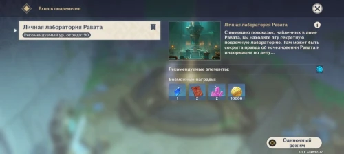 Она представляет собой сюжетное подземелье, для прохождения которого игра советует взять Гидро персонажей — они действительно могут быть полезны в сражении с Пиро слаймами, однако вы все равно можете взять любых удобных героев. В ваш отряд также попадет пробная Сиджвин.