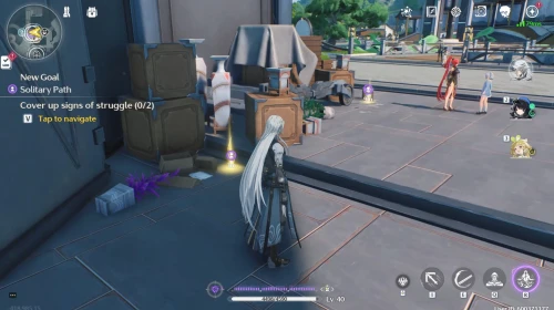 Во время разговора с незнакомкой можете выбирать любые ответы, так как они лишь слегка изменят диалоги. Далее вам нужно будет скрыть следы недавней потасовки, до того как прибудут патрульные – просто взаимодействуйте с двумя золотыми точками. Затем снова пообщайтесь с девушкой.
