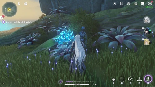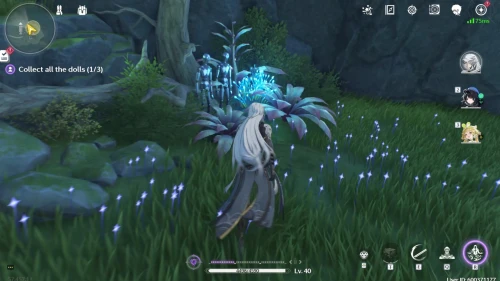 Вам нужно будет отыскать трех марионеток. Развернитесь, и вы тут же увидите первую куклу рядом со святящимся цветком. Теперь пройдите к двум манекенам, которые стоят с другой стороны, возле дерева и второго синего цветка.