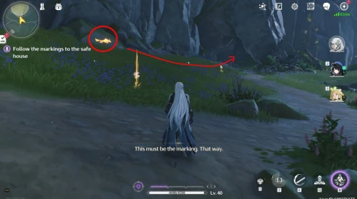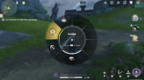 Откройте окно гаджетов (клавиша «Tab»), а потом выберите сенсор (Sensor) и нажмите клавишу «Т» для его активации. Осмотритесь, чтобы увидеть рисунок золотого волка на камне. Он будет показывать, в каком направлении вам нужно идти. Бегите к входу в пещеру, где начнется новый ролик.