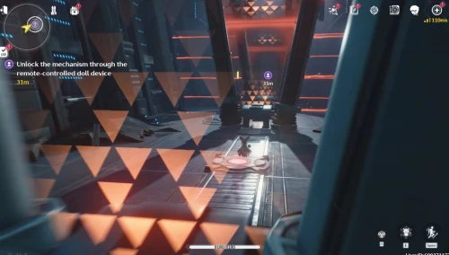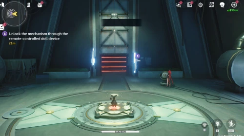Оказавшись за лазерной решеткой, взаимодействуйте с двумя объектами, выделенными маркерами. Затем снова нажмите на планшет, чтобы послать запрос о помощи. Для этого вам предстоит пройти мини-игру «Подбор частоты сигнала».