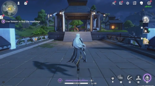 Далее выберите сенсор в меню устройств и примените его (клавиша «Т»). Вы увидите рисунки золотого волка на стенах, которые приведут вас к открытой беседке, где вы вновь встретите Инь Линь. Еще раз поболтайте с ней для завершения квеста.