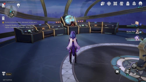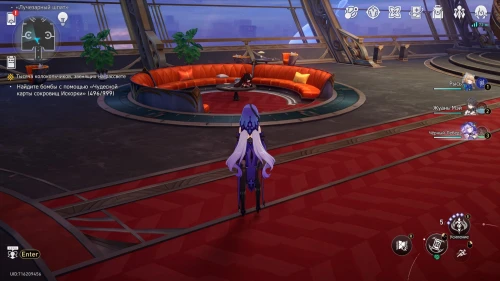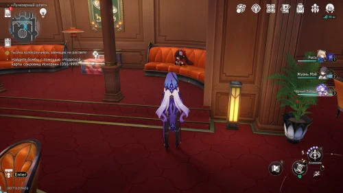 Бегите к барной стойке напротив бассейна, с левой стороны, и подойдите к игрушке в виде Искорки. Взаимодействуйте с ней. Выбирайте любые ответы, так как бомба все равно не настоящая.
