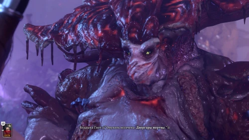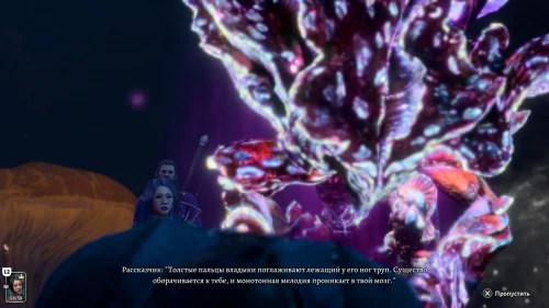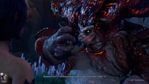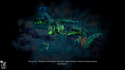 Глот начнет расспрашивать вашего персонажа о своем доме. В ответ он телепатически покажет вам свой дом: сырую пещеру полную убитых миконидов. Глот расскажет о том что на его круг напали двергары, и он жаждет им отомстить.