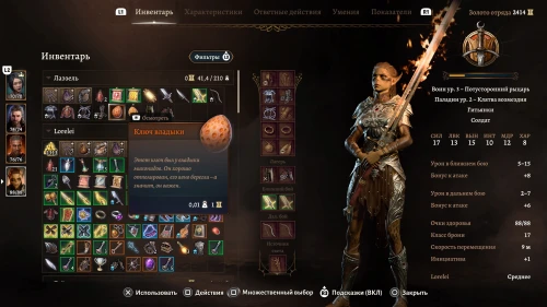 Если вы захотите осмотреть инвентарь мертвого Спава, то Глот вам не даст этого сделать. Однако, можно осмотреть тело в режиме скрытности, попутно отвлекая миконидов песней барда или заклинанием «Малая иллюзия». Вы найдете несколько алхимических ингредиентов, свитков («Расплывчатость» и «Паралич гуманоида» ) и Ключ Владыки.