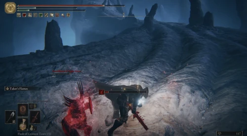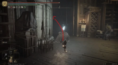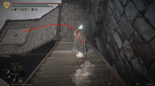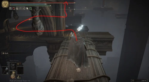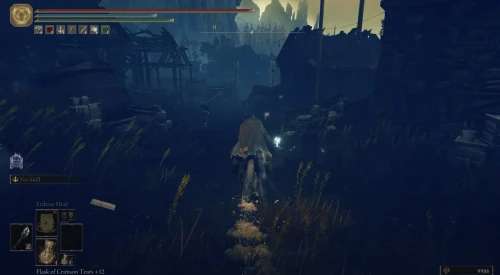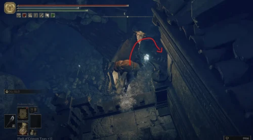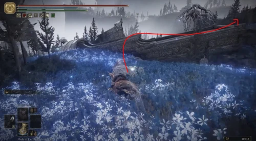 В северной части руин вы обнаружите место для проведения ритуалов с висячим колоколом – подойдите к нему и позвоните в него. Вы получите Талисман с кровавыми семенами +1, который увеличивает эффективность фляг багровых слез.