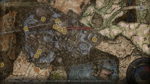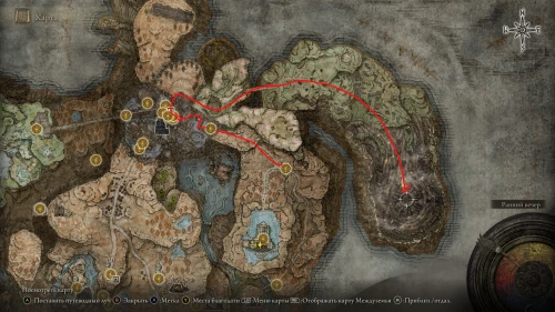 Вы сможете добраться до данной локации только после того как расправитесь с Релланой, Рыцарем Двойной Луны, в замке Энсис, а затем пройдете в Теневой Альтус. Доберитесь до места благодати «Крест у дороги», а потом двигайтесь на север, чтобы найти обрывок карты новой области у Путеводной стелы. Мы сразу показали весь маршрут до собора Манус Метир на скриншотах ниже.