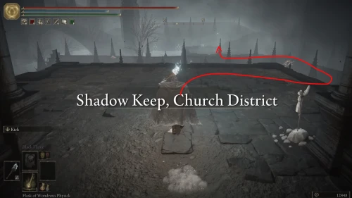 Вторая карта будет указывать на Руины обители пальцев Дио, расположенные к востоку от собора. Попасть туда можно через Пристанище Теней, однако драться с боссом вам необязательно. Переместитесь к «Тракту церковного круга», а затем двигайтесь на северо-запад и дойдите до места благодати «Проход в церковный круг».