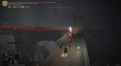 Добыв жест, вернитесь назад к основной дороге и продолжайте двигаться на восток – пересеките два моста и активируйте место благодати «Мост, ведущий в деревню». Теперь начните бежать на север, пока не достигните «Тракта церковного круга». Будьте осторожны, так как по пути вам встретятся множество волков и голем.