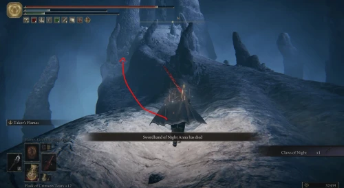 Спуститесь по деревянной лесенке вниз, а потом начните идти по единственному пути вперед. Будьте осторожны, так как впереди появится ночная мечница Анна. Разберитесь с ней, чтобы получить Когти Ночи. Далее не идите наверх к колоколу – вместо этого сверните влево и подберите с трупа Справочник ткача пальцев [2]. Теперь возвратитесь к Йолане и расскажите ей, что вас атаковала ночная мечница в подземелье. Поговорите с ней несколько раз.