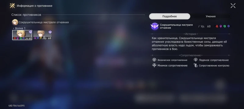 - Боссы — составляя отряд, вы можете ознакомиться с уязвимостями и сопротивлениями противника, а также с его умениями.