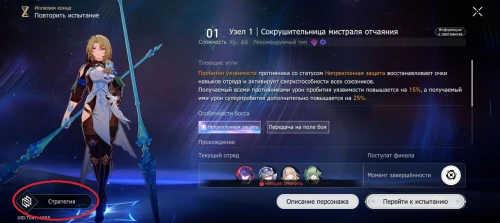 Для завершения квеста вам необходимо пройти испытание на первом уровне сложности. Особенности данного игрового режима описаны в нашем гайде. Здесь предоставим краткие рекомендации, и вещи, на которые стоит ориентироваться при составлении отряда: