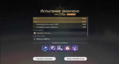 - Убивать босса необязательно — испытание будет пройдено, даже если вы не смогли добить противника, но набрали достаточное количество очков. Оно в таком случае высчитывается из процента оставшегося ХП противника.