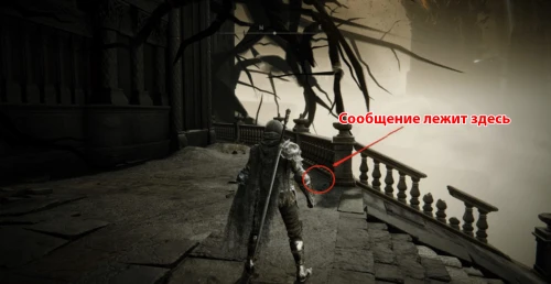 Бегите к голове статуи, а с нее спрыгните на площадку на западе. В результате вы доберетесь до места благодати «Хранилище, четвертый этаж». Продолжайте двигаться в западном направлении, чтобы выйти на балкон, а потом сверните влево и поднимитесь по лестнице вверх. Двигайтесь дальше на юго-восток, пройдя мимо огней и поднявшись по еще одной лесенке.