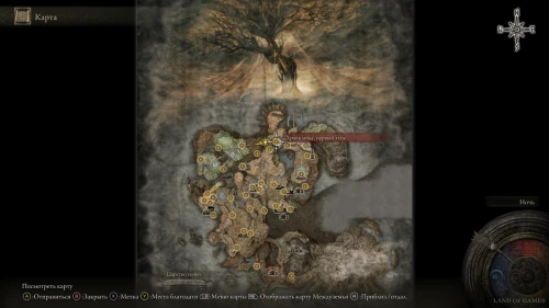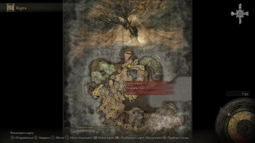 Попав в Теневой Альтус, продолжайте двигаться на север, пока не доберетесь до места благодати «Крест у дороги». Возле него вы отыщите Леду – поговорите с ней несколько раз, пока у нее не исчерпаются все диалоги. Затем пообщайтесь с Роговестом, который даст вам еще одну карту с расположением крестов.