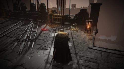 После сжигания дерева вы телепортируетесь в Энир-Илим. Начните прохождение данной локации, пока не доберетесь до места благодати «Прихожая Палаты Очищения». Затем поднимитесь по лестнице на восток и пройдите на просторную арену. Здесь вы обнаружите несколько знаков призыва.