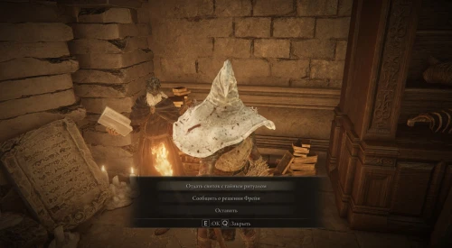 Важно: Еще раз отметим, что нельзя отдавать Свиток Тайного обряда Ансбаху, пока вы не встретитесь с Фрейей в Пристанище Теней и не расскажите Ансбаху о ее решении. В ином случае старик попросту исчезнет из данной локации, и вы не сможете продолжить квест рыцаря Рыжей гривы.