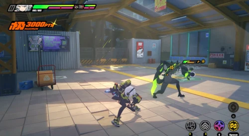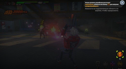 Поднимитесь по лестнице наверх и выполните новую задачу «Оглушите врага и запустите цепочку атак 3 раза». Вы будете накапливать уровень децибелов, и когда он достигнет максимума, вы сможете использовать суперспособность (клавиша «Q») персонажа. Далее гляньте новый комикс.