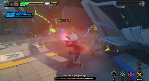 После просмотра еще нескольких роликов и комиксов вы окажитесь в каверне и возьмете под свое управление Энби. Пройдите вперед, следуя инструкциям на экране, а затем разберитесь с противниками, используя базовые атаки (ЛКМ) и особые удары (Е), которые можно улучшить до усиленных после накопления достаточного количества энергии.
