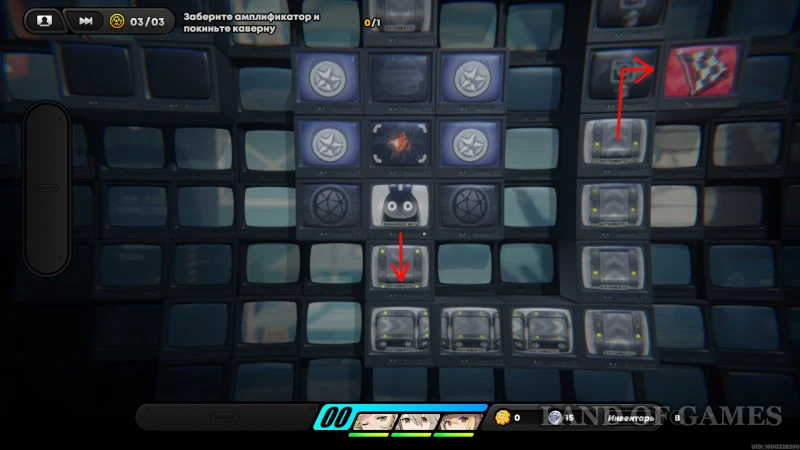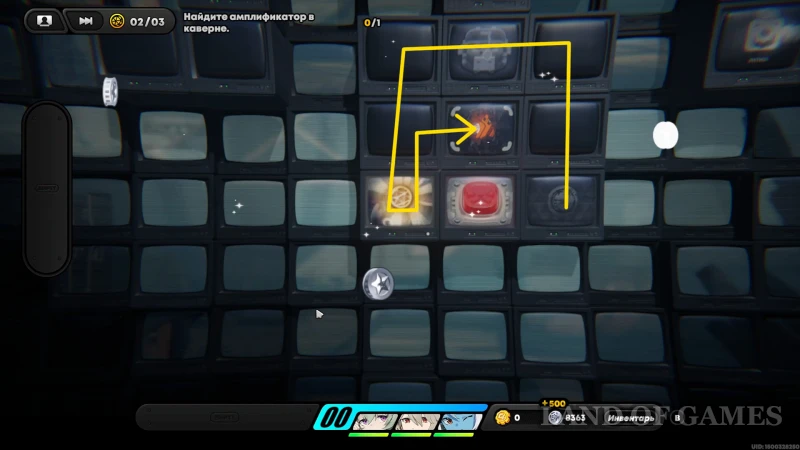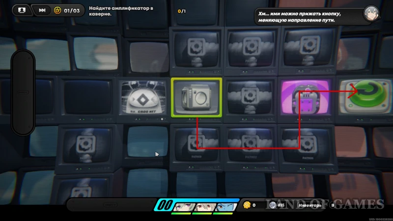 Наша задача: найти пропавший ящик с амплификаторами. После открытия режима исследования каверны, передвигайтесь вправо до красной кнопки – она разблокирует обходной путь, через который можно миновать зону битвы (в ней не дают ничего, кроме игровой валюты/денни).