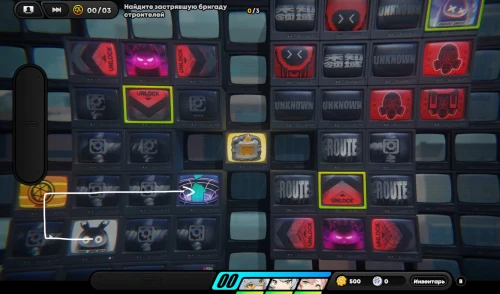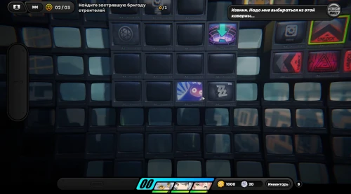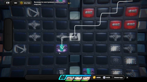 Расправившись с врагами, вы разблокируете все красные клетки. Вылечитесь и соберите пакеты данных, обойдя ячейки по бокам, а потом спуститесь вниз к первому рабочему. Он будет в панике, поэтому вам необходимо дать ему отрезвляющую пощечину. После этого строитель сам направится к выходу, находящемуся внизу.
