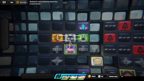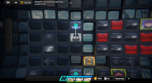 Итак, первым делом подберите пакет данных наблюдения чуть левее и выше, а потом войдите в воронку, дабы попасть на нижнюю карту. Здесь поднимитесь наверх и влево, чтобы поговорить с исследователем и разблокировать новые клетки.