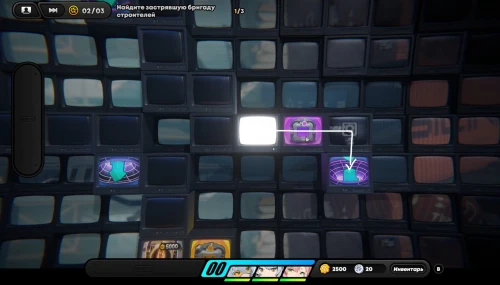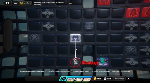Пройдя через воронку, вы окажитесь в самой первой локации, но с правой стороны. Пройдите наверх и встаньте на клетку с монстром. Вас ждет очередная битва с эфириалами, которые тоже будут уязвимы к огню. Разобравшись с противниками, вы разблокируете все красные клетки вокруг себя. Соберите лечилки и пакеты данных по бокам, а потом спасите второго рабочего наверху – он сам вернется домой.