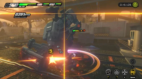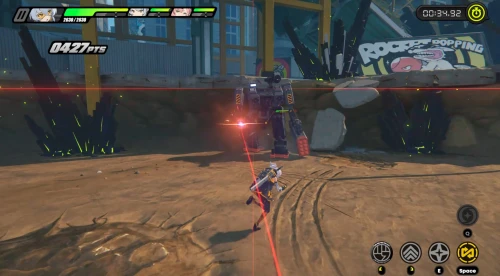 В целом же данный босс использует те же атаки, что и предыдущий. Однако выстрелов из пушки стало больше, поэтому старайтесь выполнять несколько рывков, чтобы уклониться от всех снарядов. Противник может также начать использовать пулемет – в этом случае быстренько переключитесь на персонажа с мечом (Энби, например) и начните использовать спринт для отбития всех пуль.