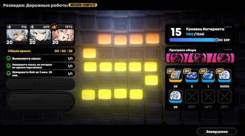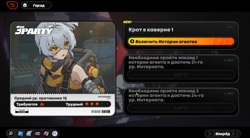 Для выполнения этого задания требуются агенты не ниже 16-го уровня, относящиеся к атрибуту Электро. Советуем вам собрать отряд из Николь (поддержка), Энби (саб-ДД) и Билли (мейн-ДД). Последнего можно заменить имеющимся у вас 5-звездочным дамагером. Не забудьте также дать Энби амплификатор Аккумулятор Демары II.