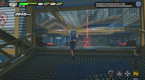 Завершив сбор данных, войдите в портал. Вы окажитесь во второй области, где нужно просто расправиться с группой врагов. Далее поднимитесь наверх и взаимодействуйте с устройством извлечения данных для его активации. Снова начните выталкивать противников из синей зоны. На этот раз будет больше бойцов ближнего боя, поэтому советуем вам поскорее расправиться с ними.