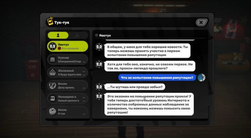 К этому моменту вы уже должны будете достичь 20-го уровня Интернота и собрать нужное количество пакетов данных. Проснувшись, вы спуститесь вниз и поговорите с розоволосой девушкой в видеопрокате. После этого прочтите сообщение от Пастуха, который предложит вам повысить свою репутацию прокси, что приведет к началу задания «Путь прокси I».