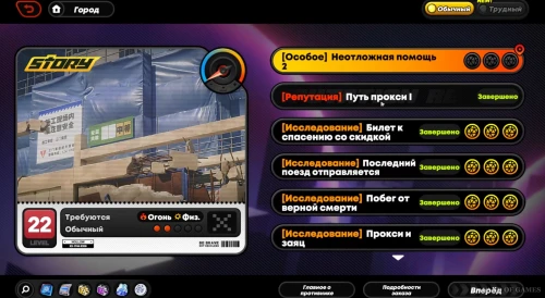 Возвратитесь в видеопрокат, взаимодействуйте с системой HDD и кликните на шар под названием «Основная линия». Далее выберите заказ «Неотложная помощь 2» и нажмите «Вперед» для старта соответствующего задания. Игра посоветует вам взять физических и огненных персонажей не ниже 22 уровня. Подробное прохождение квеста можно изучить в нашем отдельном гайде.