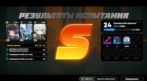 Не забывайте, что помимо миссий вы можете выполнять испытания инспектора Мяучело и проходить различные «Тренировки», направленные на фарм материалов. Потратив 240 единиц заряда аккумулятора, вы запросто заработаете 2400 кредитов Интернота.