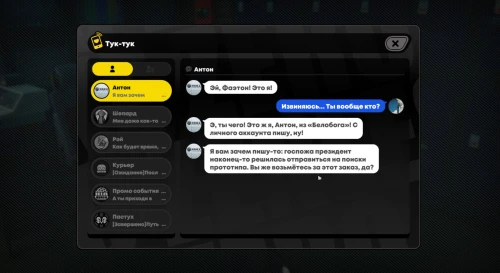 Выйдите из своего магазина и двигайтесь в сторону Магазина игрушек. Напротив него будет стоять подозрительный тип. Поговорите с ним – можете выбирать любые ответы. Вы узнаете, что он представляет «Белобог» и попросит вас последовать за ним. Идите на парковку и сядьте в автомобиль.