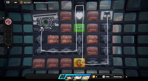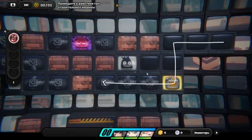 Справа откроется проход ко второму пульту управления и новому пакету данных. Встаньте на эту клетку, чтобы взять под управление грейфер. Он напротив способен уничтожать бомбы, но не может разрушать стены. На втором изображении ниже показан оптимальный маршрут для него со сбором чемоданчика.