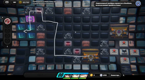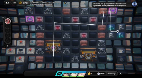 . Вокруг вас появятся пульты управления, с помощью которых вы сможете перемещать проходческую машину на основном поле. Отметим, что она способна ломать стены, однако уязвима к взрывчатке. На втором скриншоте ниже показан оптимальный для нее маршрут.