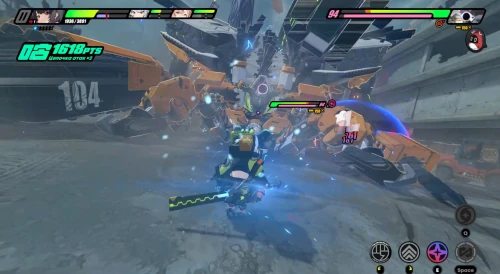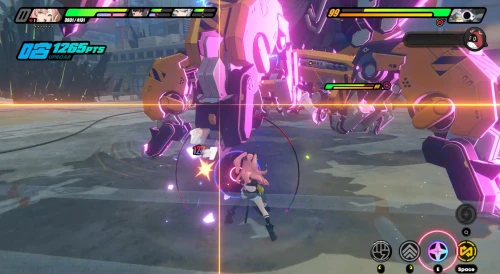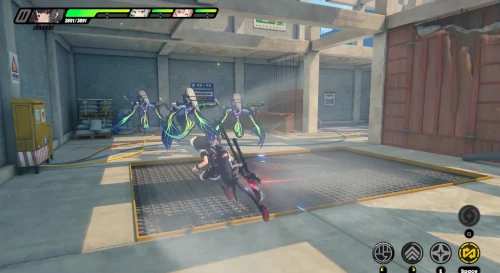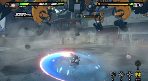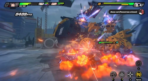 У этого врага также появятся собственные атаки. К примеру, он будет запускать в вас ракеты. От них можно отбиваться при наличии персонажа с клинком (например, Энби, Солдата 11 или Эллен). В ином случае совершайте рывки из стороны в сторону. Добавим, что противник будет также иногда совершать прыжки – тут же отбегайте от него, так как парировать эту атаку не выйдет.
