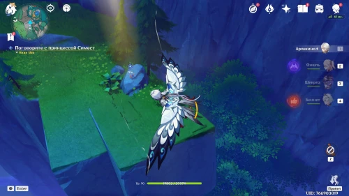 Итак, подойдите к белке-летяге, которая сядет возле обрыва, и нажмите клавишу «Т», чтобы привязать ее к себе. Далее зажмите кнопку атаки (ЛКМ) и встаньте таким образом, чтобы Симест смогла пролететь через все кольца и достигнуть цветка. Затем снова смените позицию, дабы принцесса при возвращении (снова нажмите на ЛКМ) к вам вновь пролетела сквозь все кольца. На гифке ниже показан весь процесс.