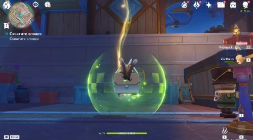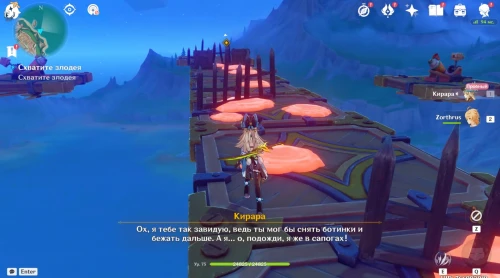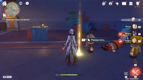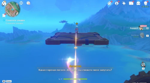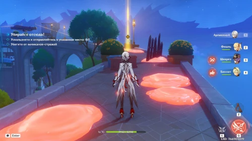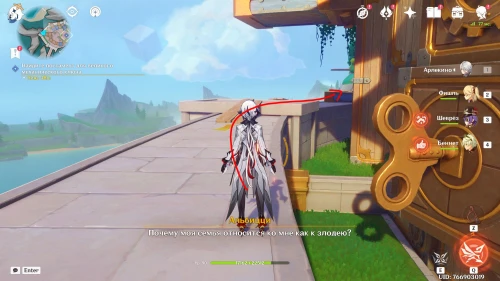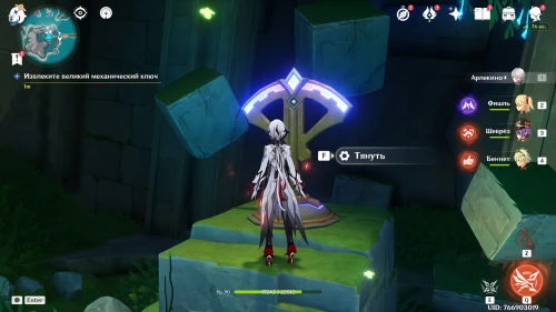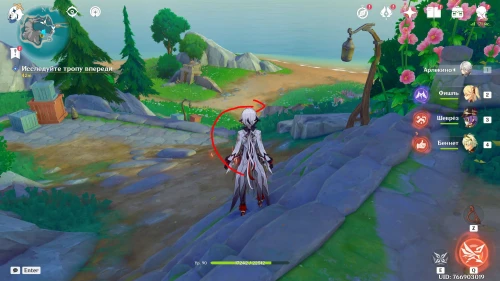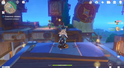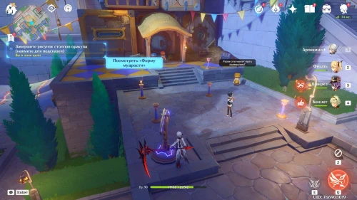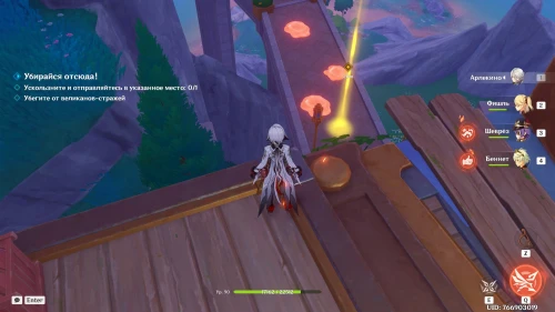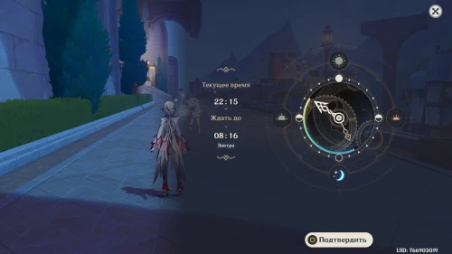 Примерно в середине пути вы обнаружите слева столп оракула – взаимодействуйте с ним для перемещения на платформу. Затем вновь нажмите на столб, чтобы быстренько добраться до финиша. Снова поболтайте с игрушками и договоритесь встретиться с ними на следующее утро (после 8:00). Для этого воспользуйтесь часами в меню Паймон.