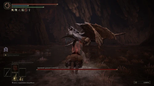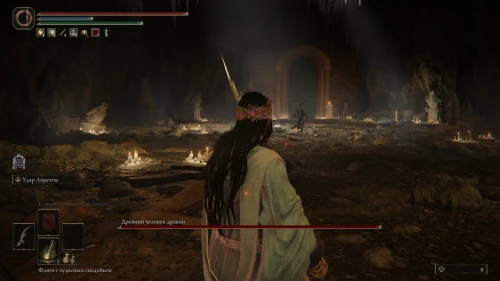 . Прыгайте вниз в огромную яму и войдите в туман, где вам предстоит сразиться с боссом «Древний человек-дракон», который будет в разы сложнее предыдущего.