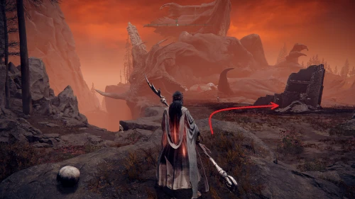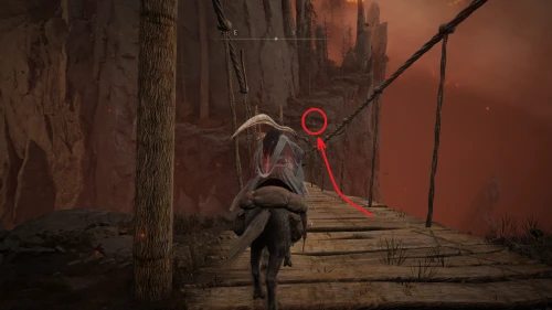 Чтобы дойти до следующей точки где находится Игон, спуститесь от сообщения и идите через каменную арку на северо-восток. Идите вперед и продолжайте путь по горной тропе, придерживаясь восточного направления, пока не увидите Духовный источник. Поднимитесь по нему, поверните направо и пройдите через висячий мост над пропастью.
